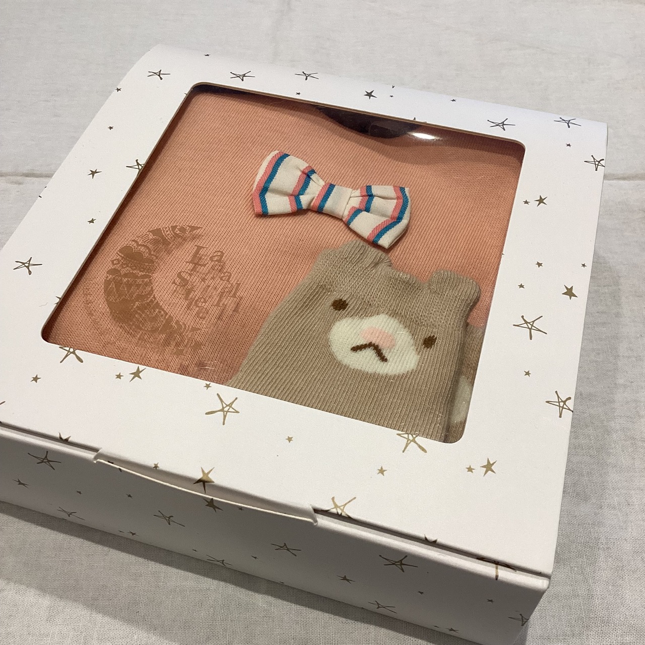 スタイとソックスがセットになったギフトボックスです。かわいらしさと機能性を兼ね備えたアイテムが揃っており、喜ばれること間違いなし!