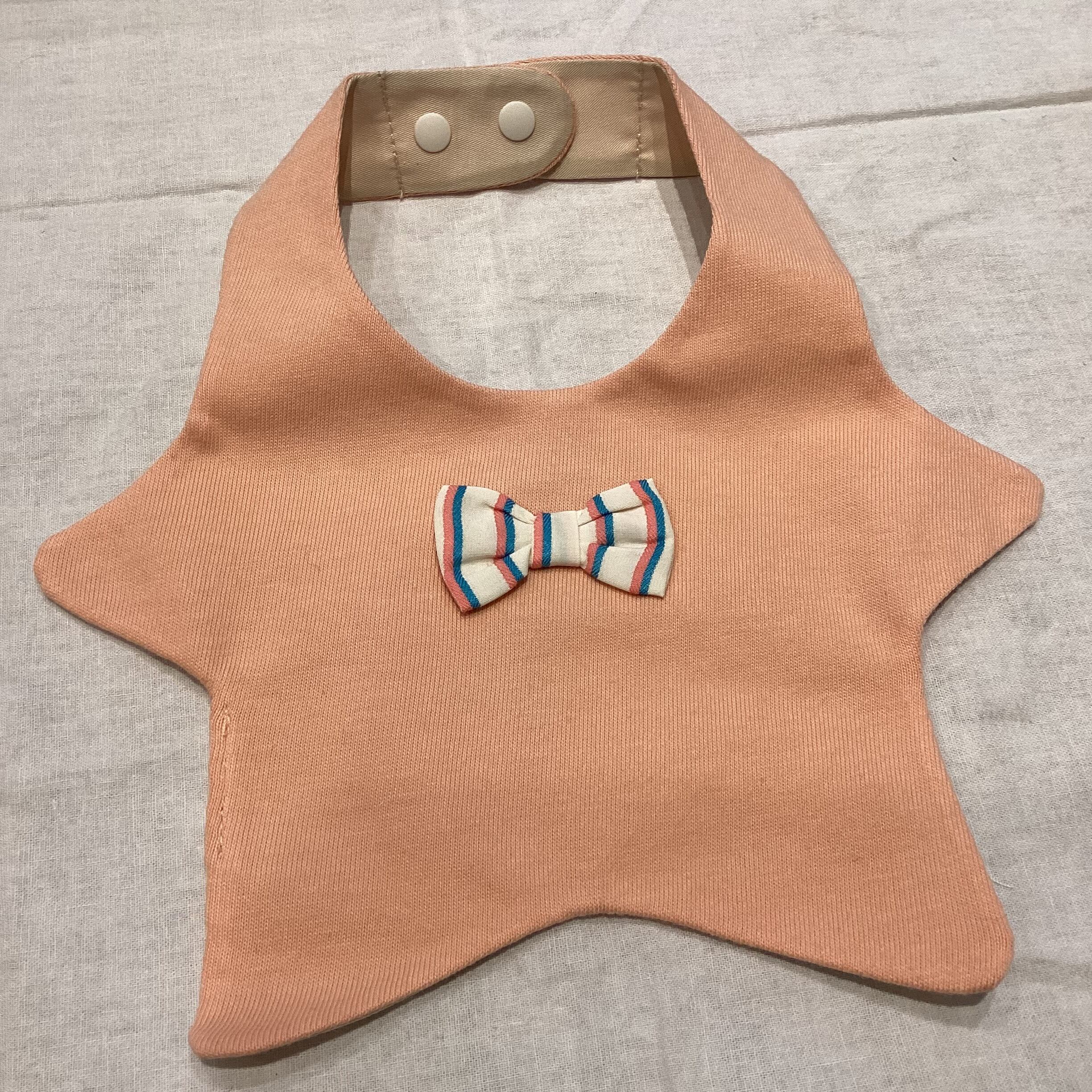 リボンデザインのスタイ。柔らかな素材で肌触りも優しく、赤ちゃんのおしゃれを引き立てます。