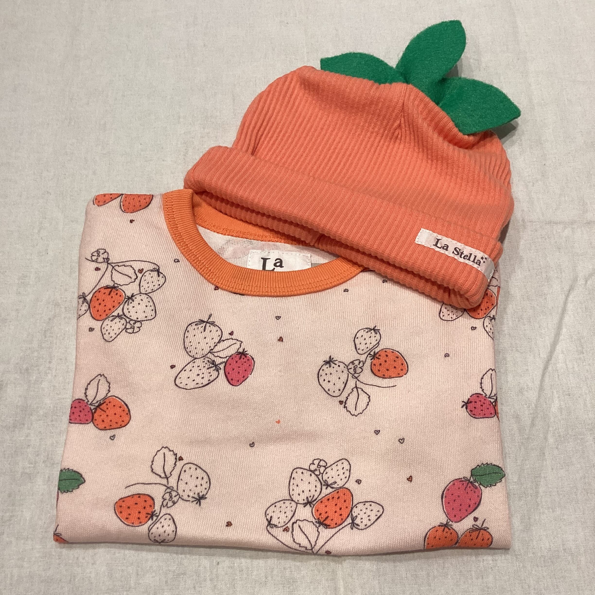 愛らしいいちごのデザインが特徴で、いちご帽子を被ればお目立ち度UP!柔らかな素材で肌触りが非常に良く、赤ちゃんに優しい作りになっています。