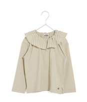 存在感のある大きな襟がかわいい長袖Tシャツ。