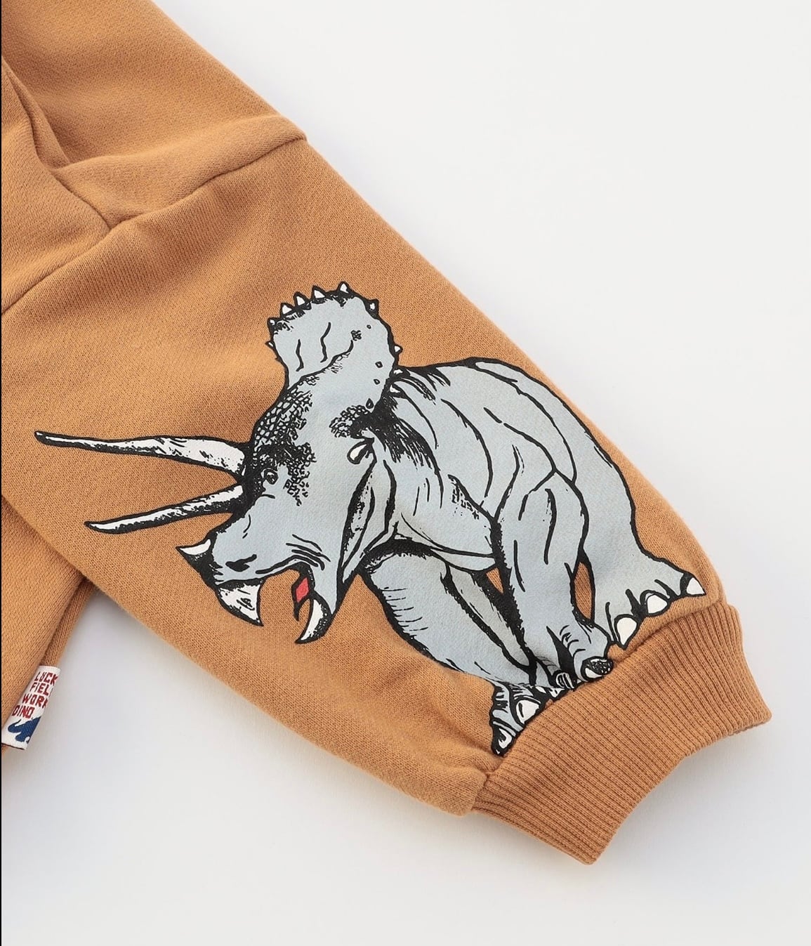 F.O.KIDS(エフオーキッズ)のトレーナー「VS DINOスリーブプリントトレーナー」で、アメカジテイストにユーズド感を加えた風合いあるデイリーカジュアルスタイルを楽しもう!アメカジテイストの子供服・ベビー服ならF.O.KIDSにおまかせ!