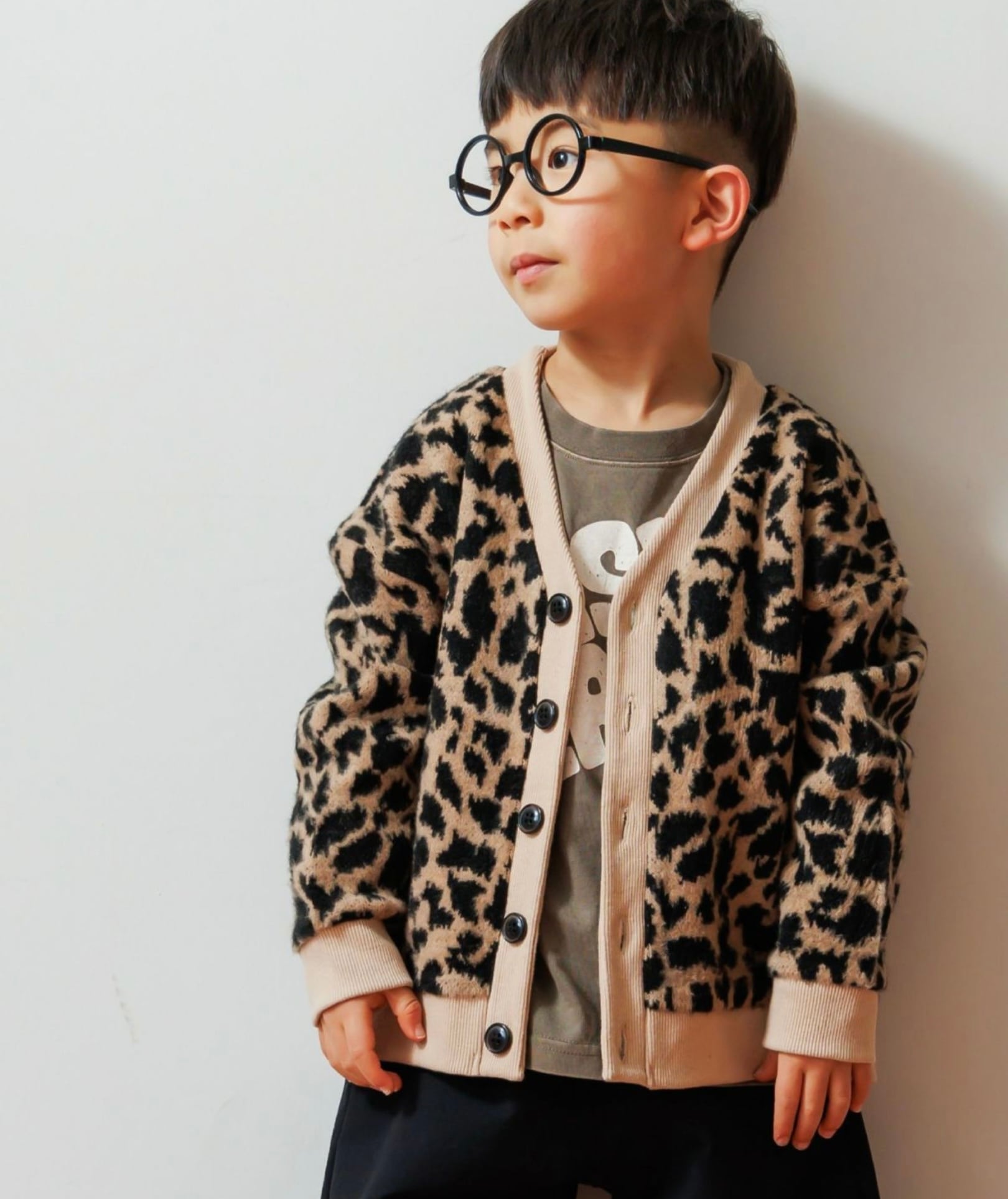 トラッドな印象のカーディガンも、こんなレオパード柄にしちゃうと一気にカジュアルな印象に◎