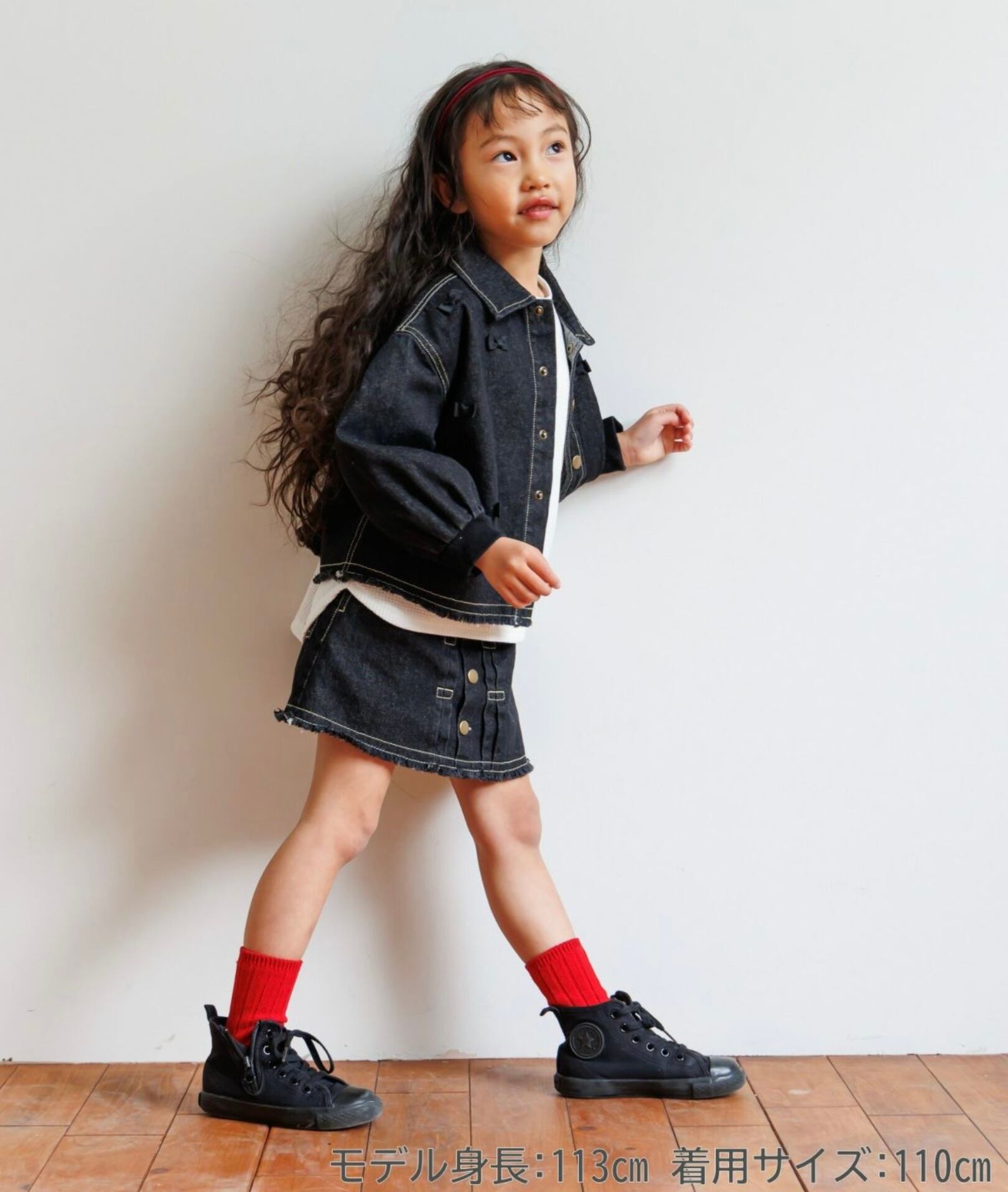 カジュアルコーデの代表格であるデニムブルゾンを、女の子向けにかわいらしくアレンジ。