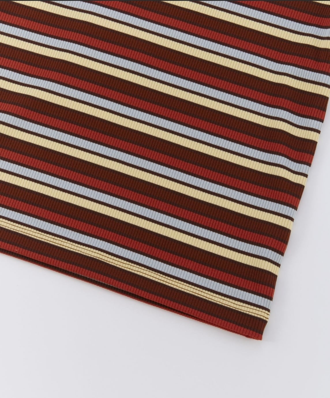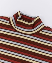 レトロムード漂うカラーリングのボーダーが目を引く、タートルネックTシャツ
