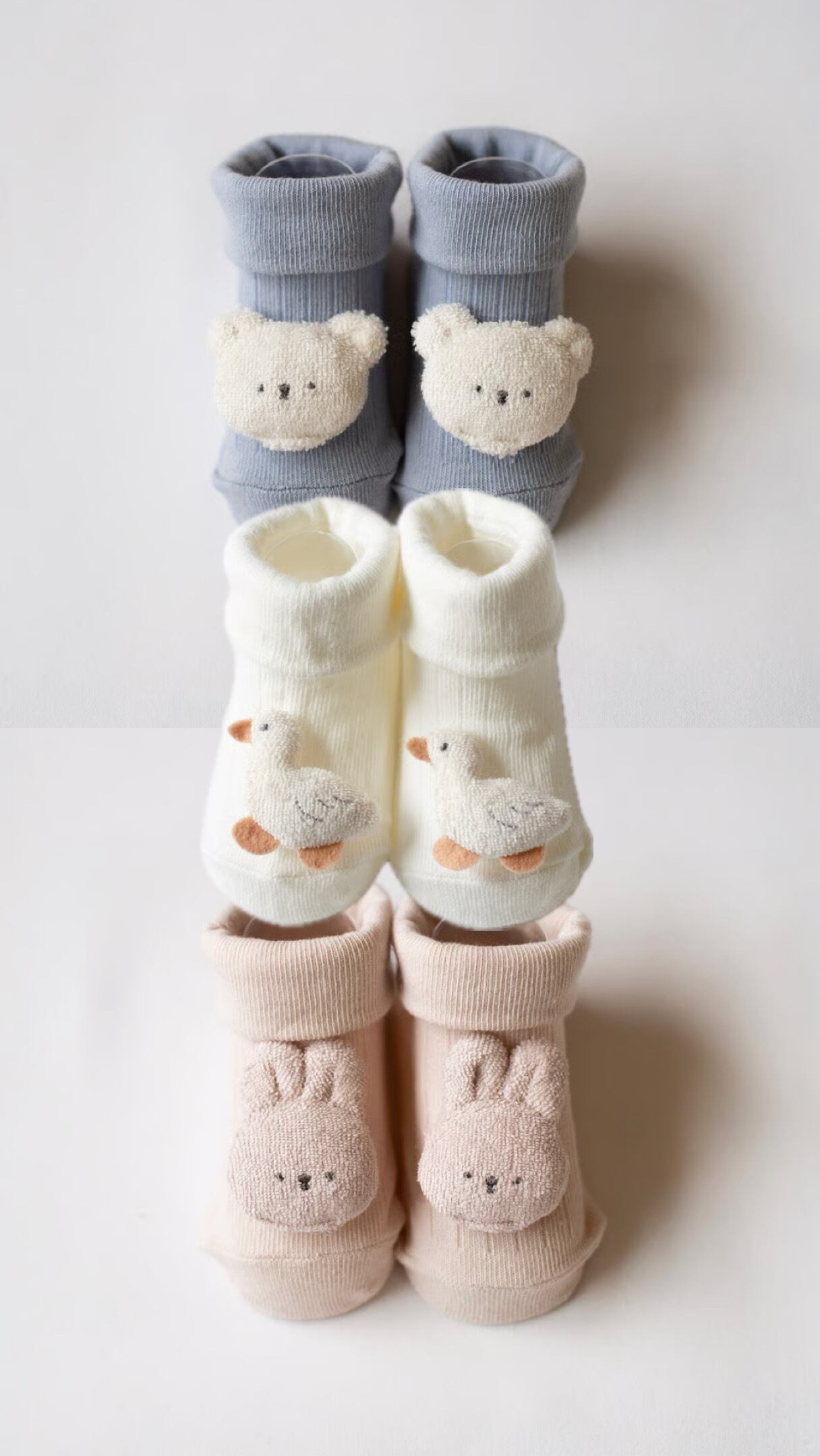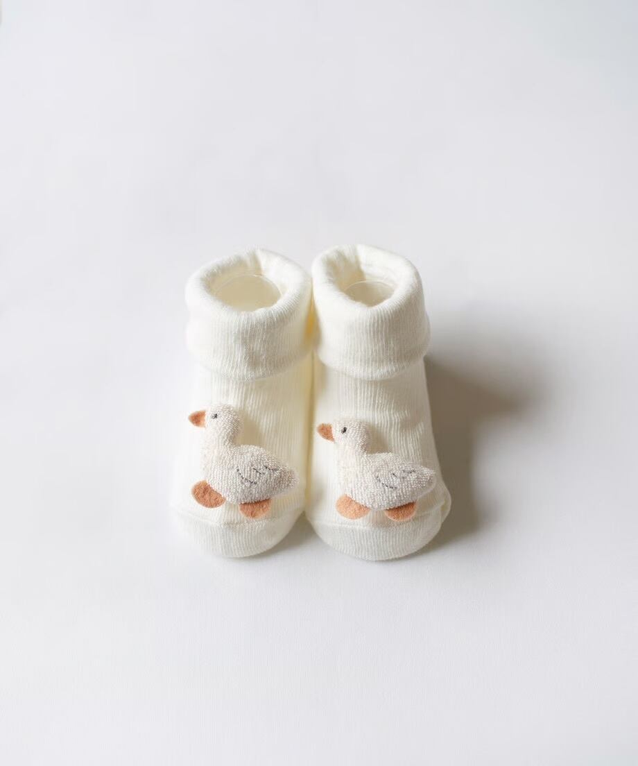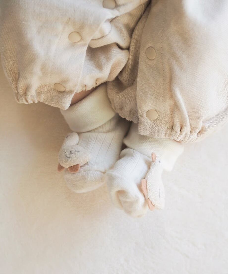 シンプルになりがちなベビーの足元にアクセントをプラス。