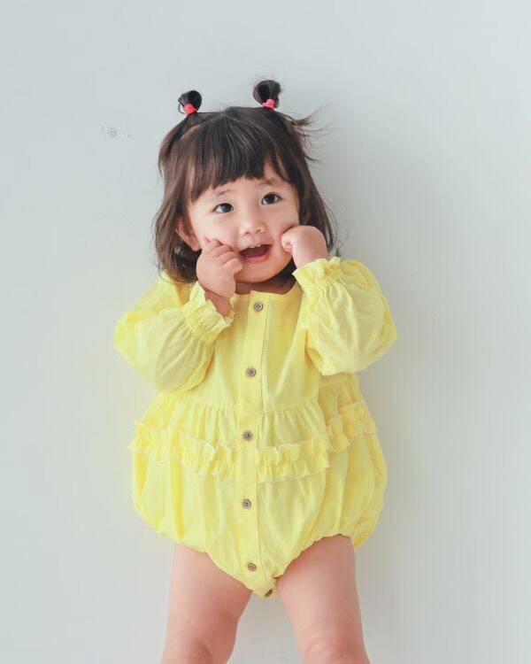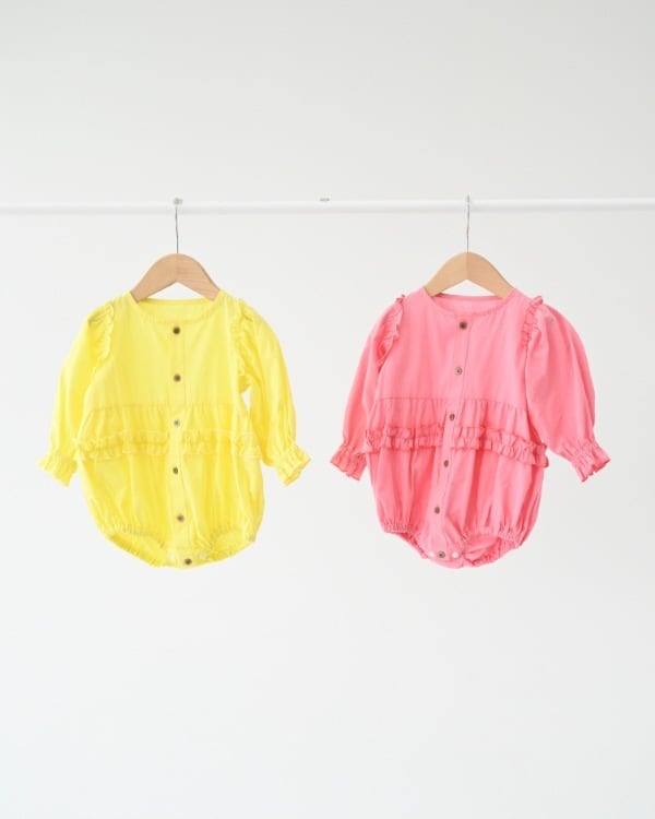 明るいカラー春らしく可愛いロンパースです。