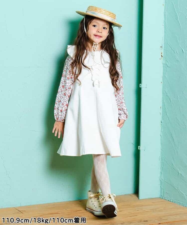 オリジナルテキスタイル「ナインチェ・プチフルール」シリーズのラッフルカラーTシャツ。
