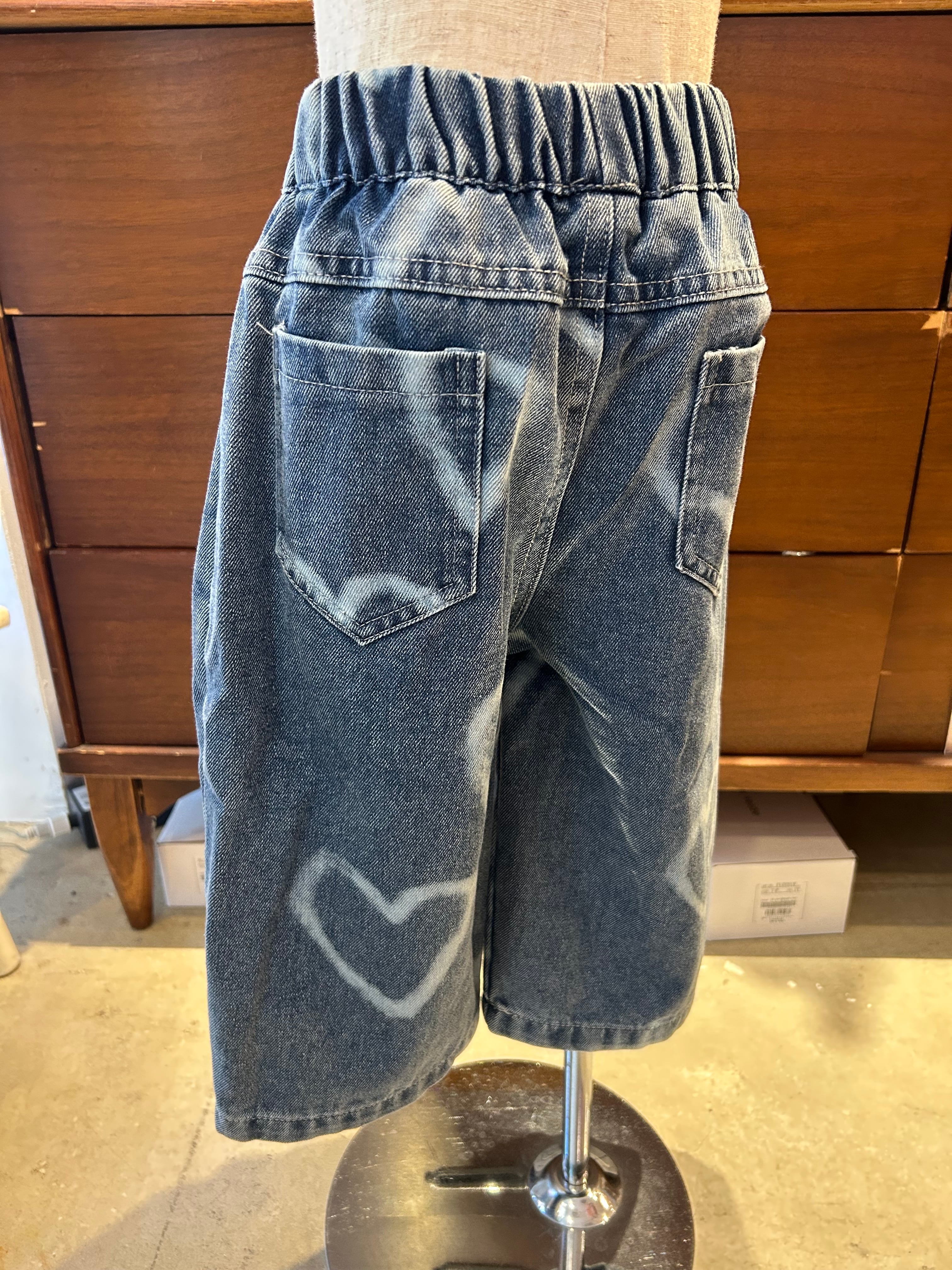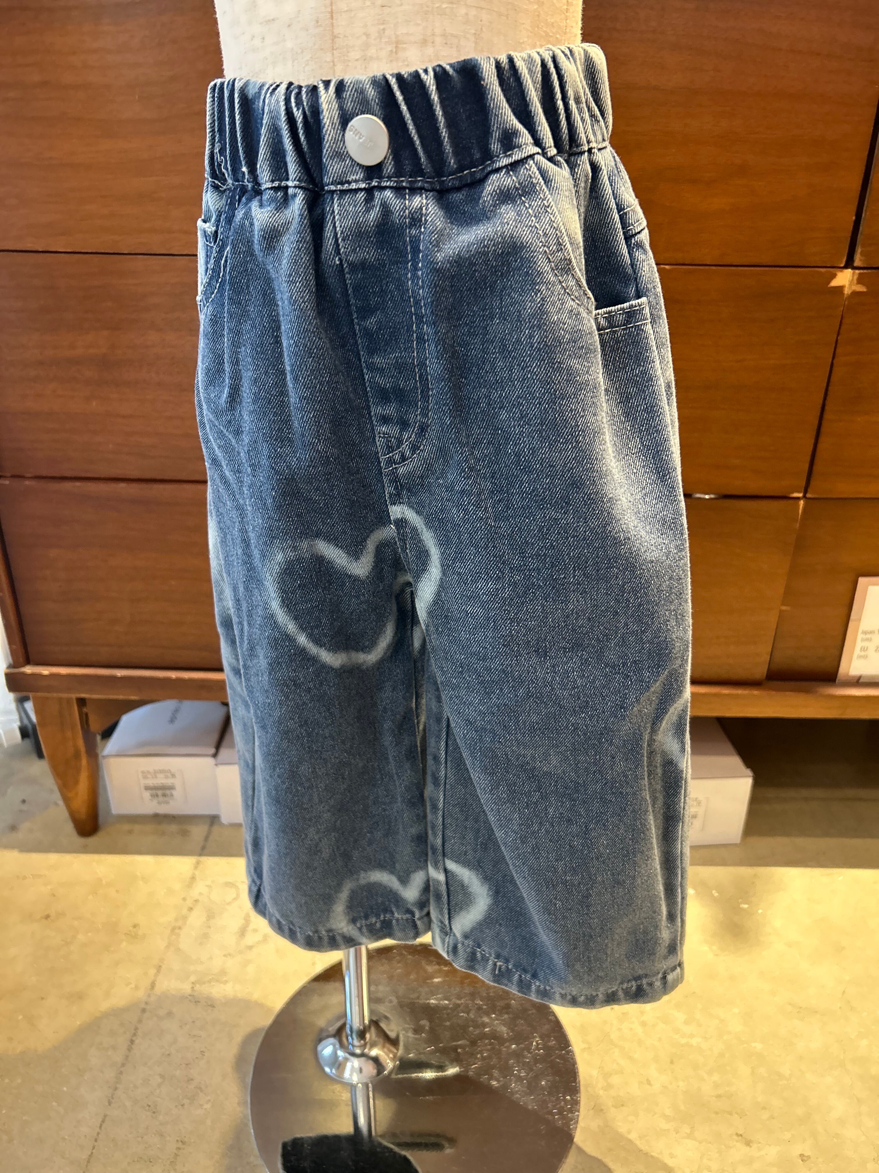 毎日のコーディネートにキュートさをプラスする、ハートデニムパンツ! Tシャツやトレーナーと合わせて、カジュアルなスタイルを楽しんでくださいね♡