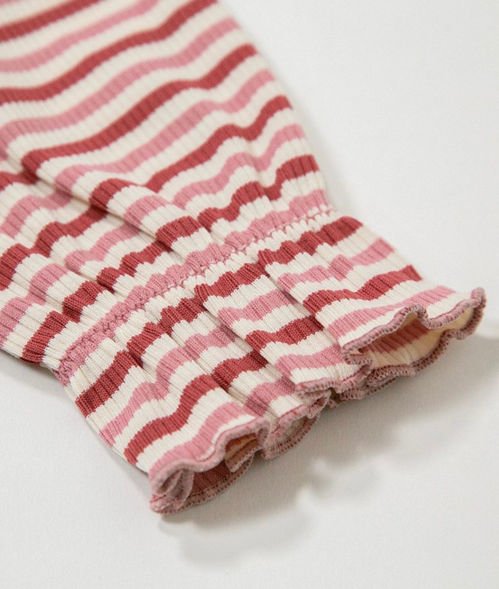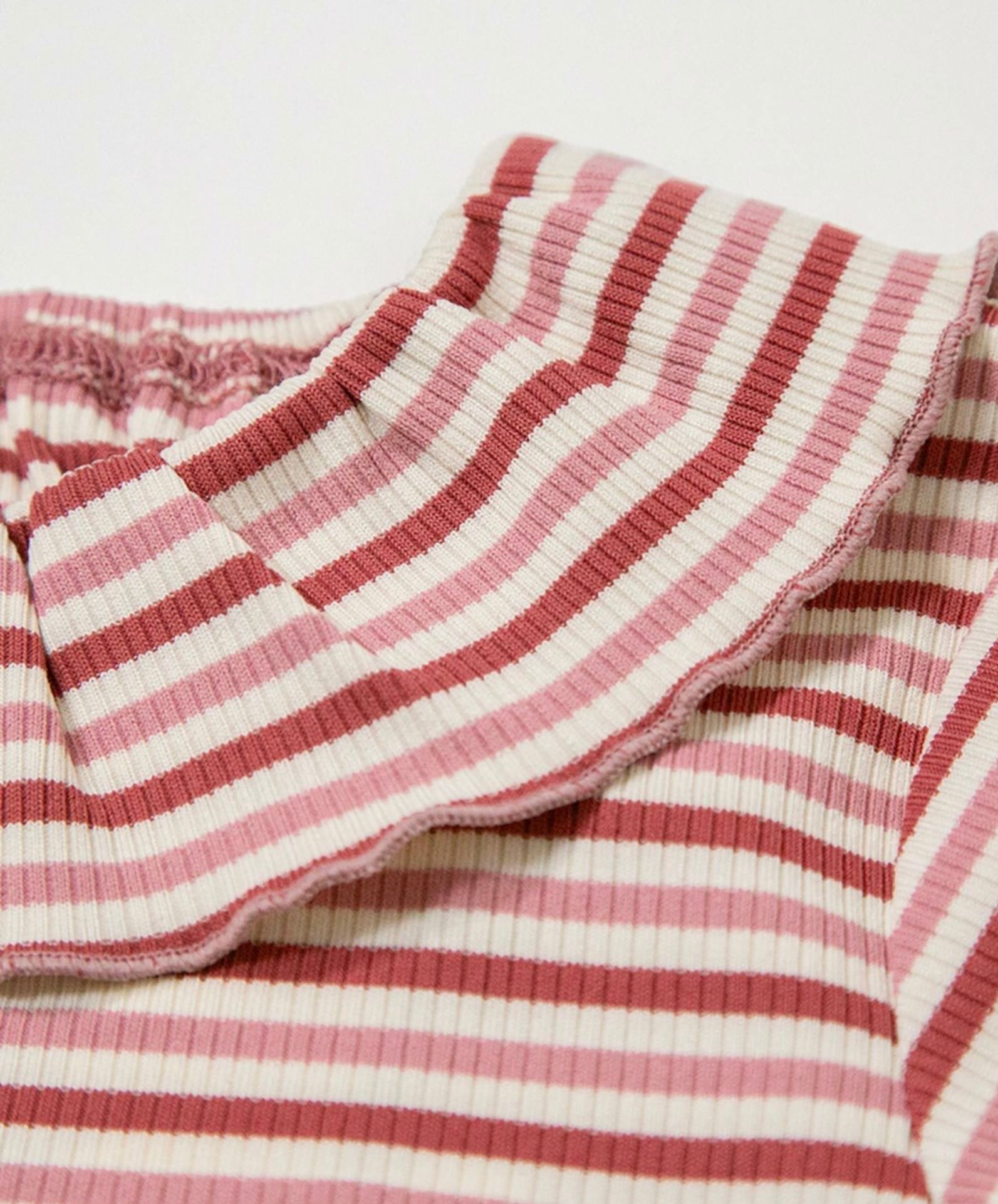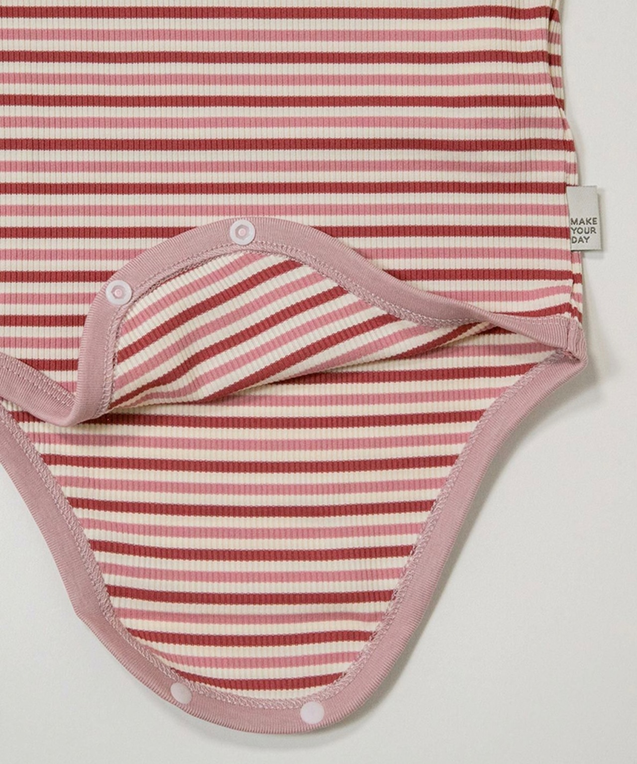 MAKE YOUR DAY フリル衿付きボーダーテレコリブロンパス M610410
