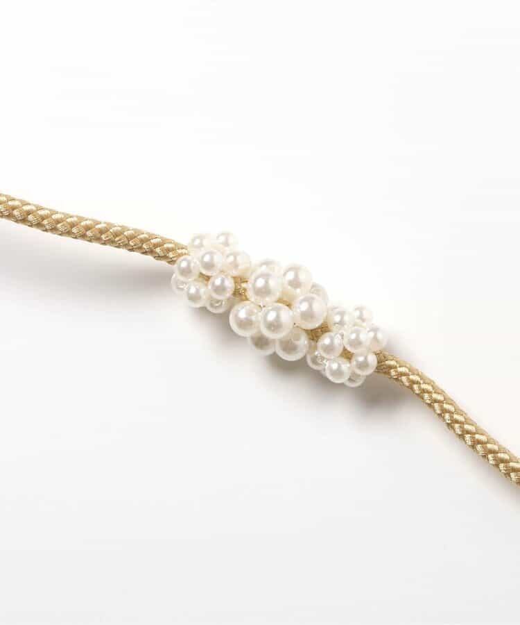 光沢感のある帯ときらきらしたお花モチーフの帯締めを合わせ、華やかさたっぷり。