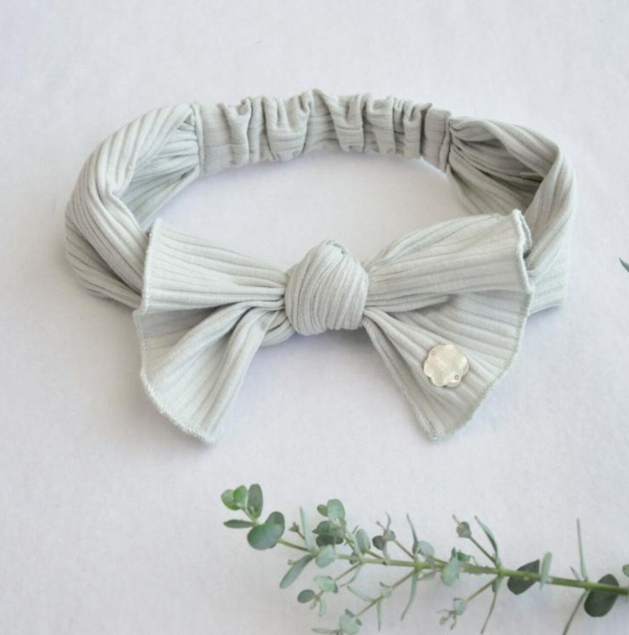 リブのリボンが可愛いベビー用ヘアバンド。